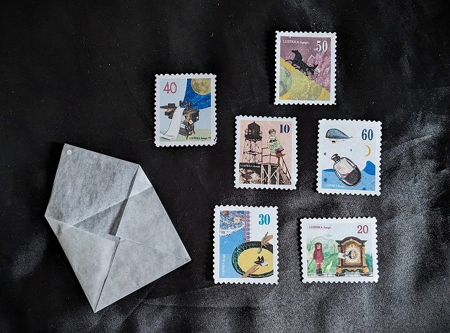 封筒に入ったコラージュ作品は全部で15種類(全て1点もの)