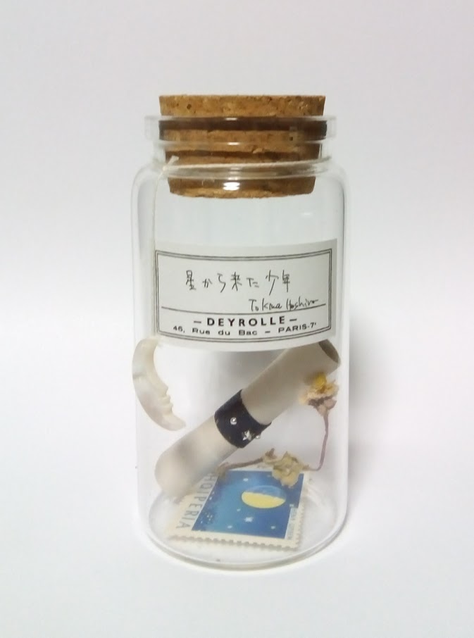 poetry&essay 星から来た少年 SOLD 著者:星野時環 月の切手、月見草(オオマツヨイクサ)ドライフラワー、三日月チャーム付 宙から来た少年 独月夜 白い月 moonlight meditation Thinking of Moon |